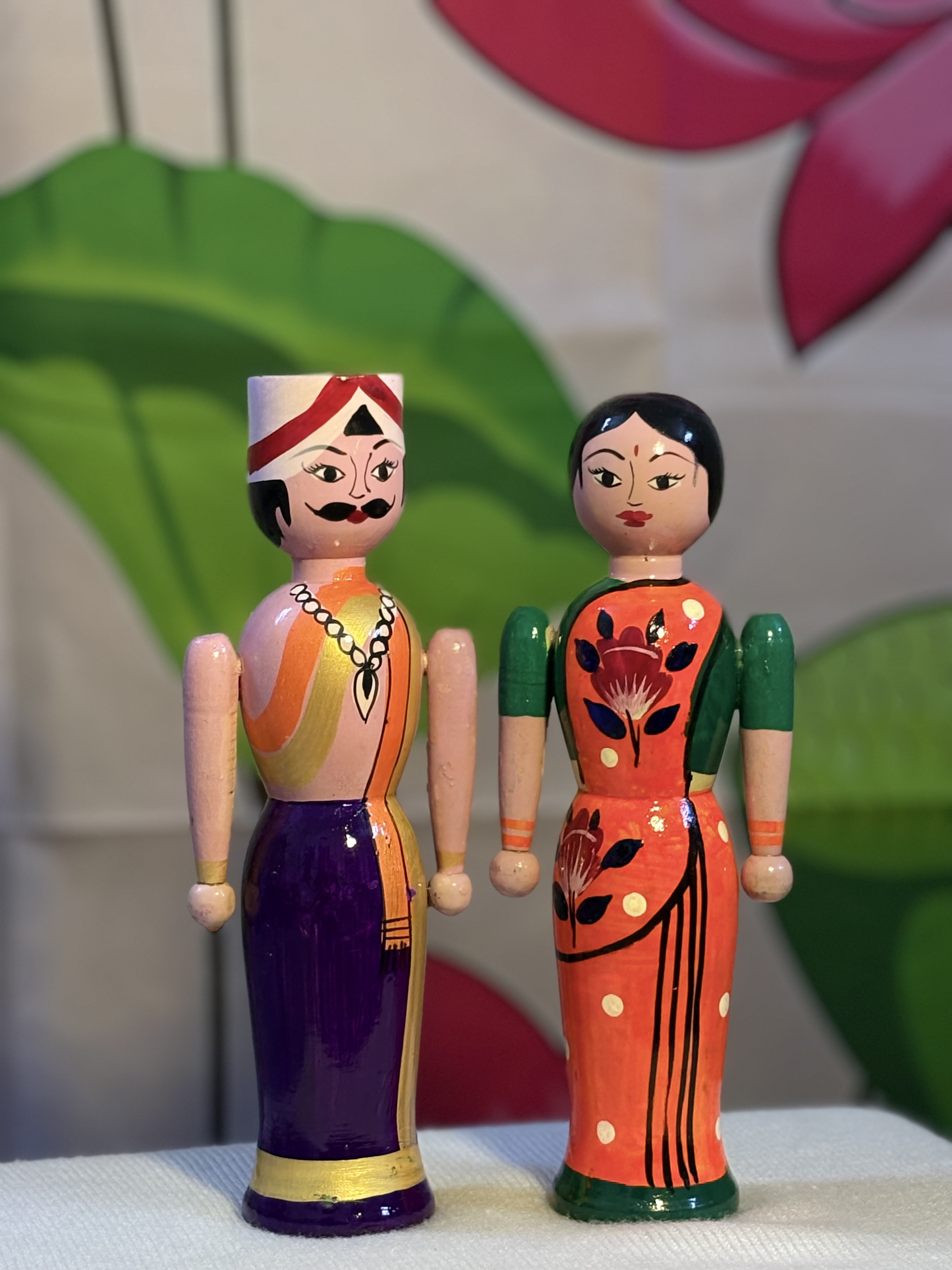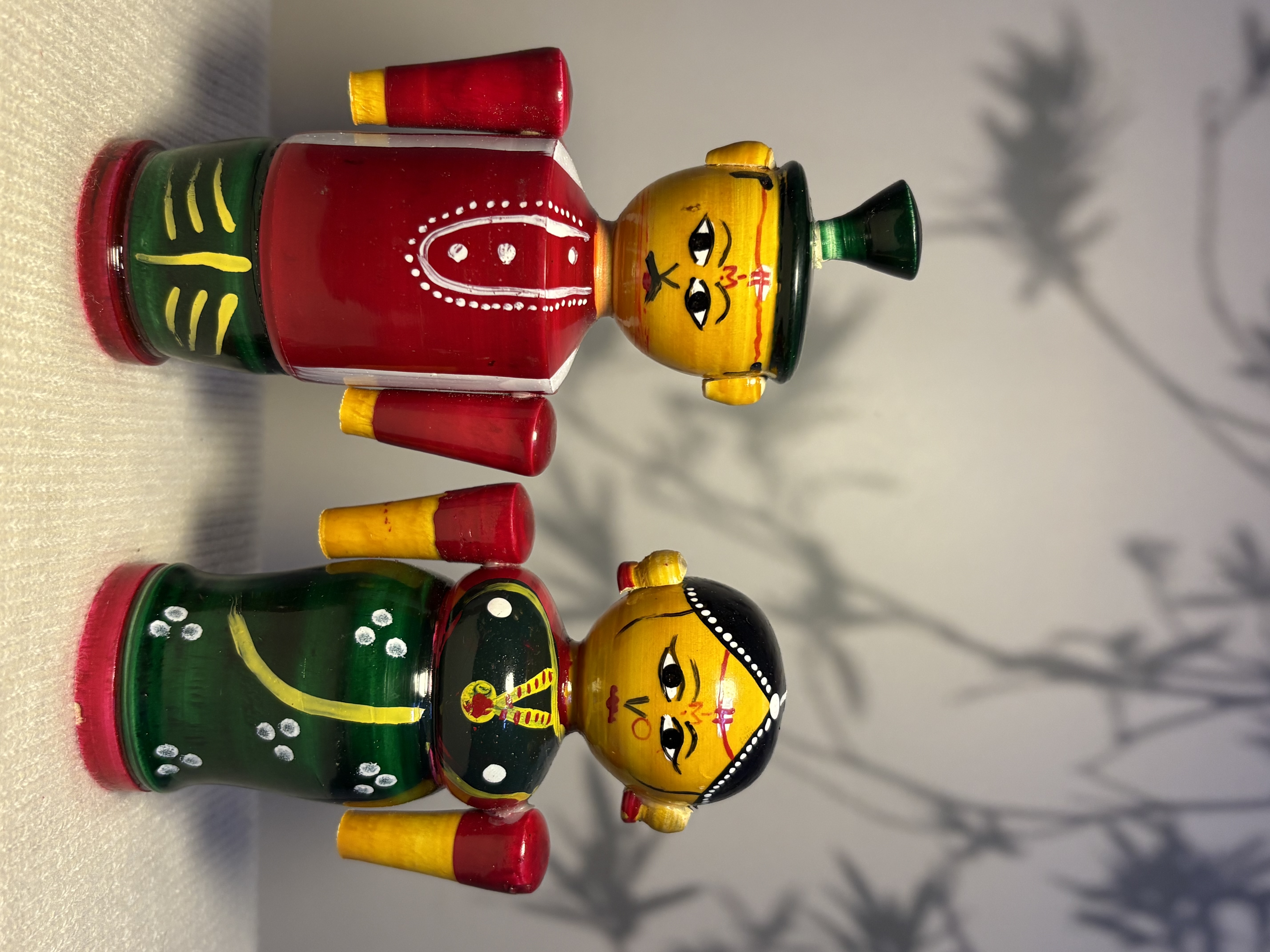 Authentic Kondapalli toys, a centuries-old craft from Andhra Pradesh. Hand-carved from lightweight wood and painted with natural colors.